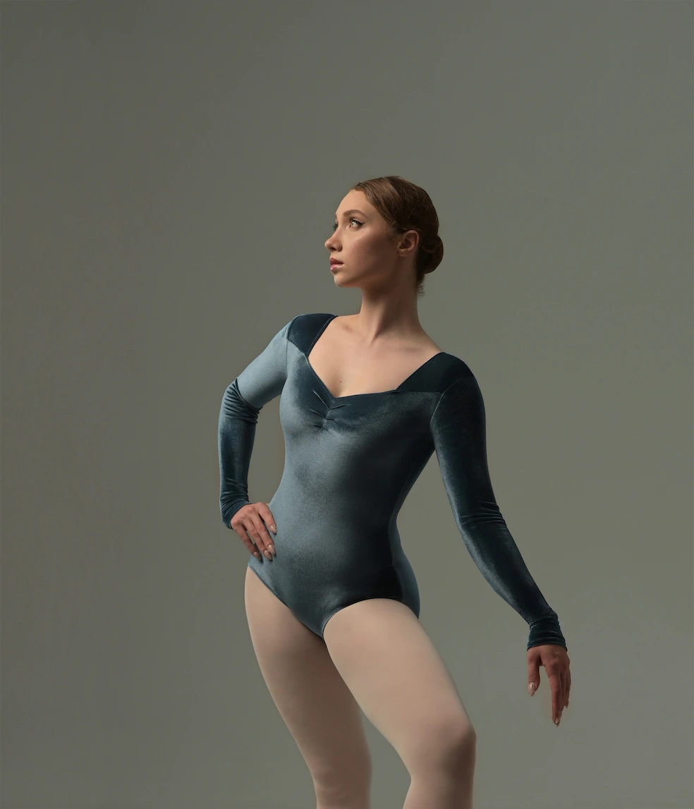 A beautifully designed long-sleeve ballet leotard that offers full coverage and a flattering fit. Made from soft stretch fabric in deep, rich shades, it moves effortlessly with the body while providing comfort and elegance. This leotard is perfect for ballet classes, rehearsals, and stage performances, giving dancers freedom of movement without compromising on style. Thanks to its versatile design, it can also be worn for pilates, yoga, or as a sleek base layer under everyday outfits. Pair it with a matching skirt in the same shade to create a refined, harmonious look.